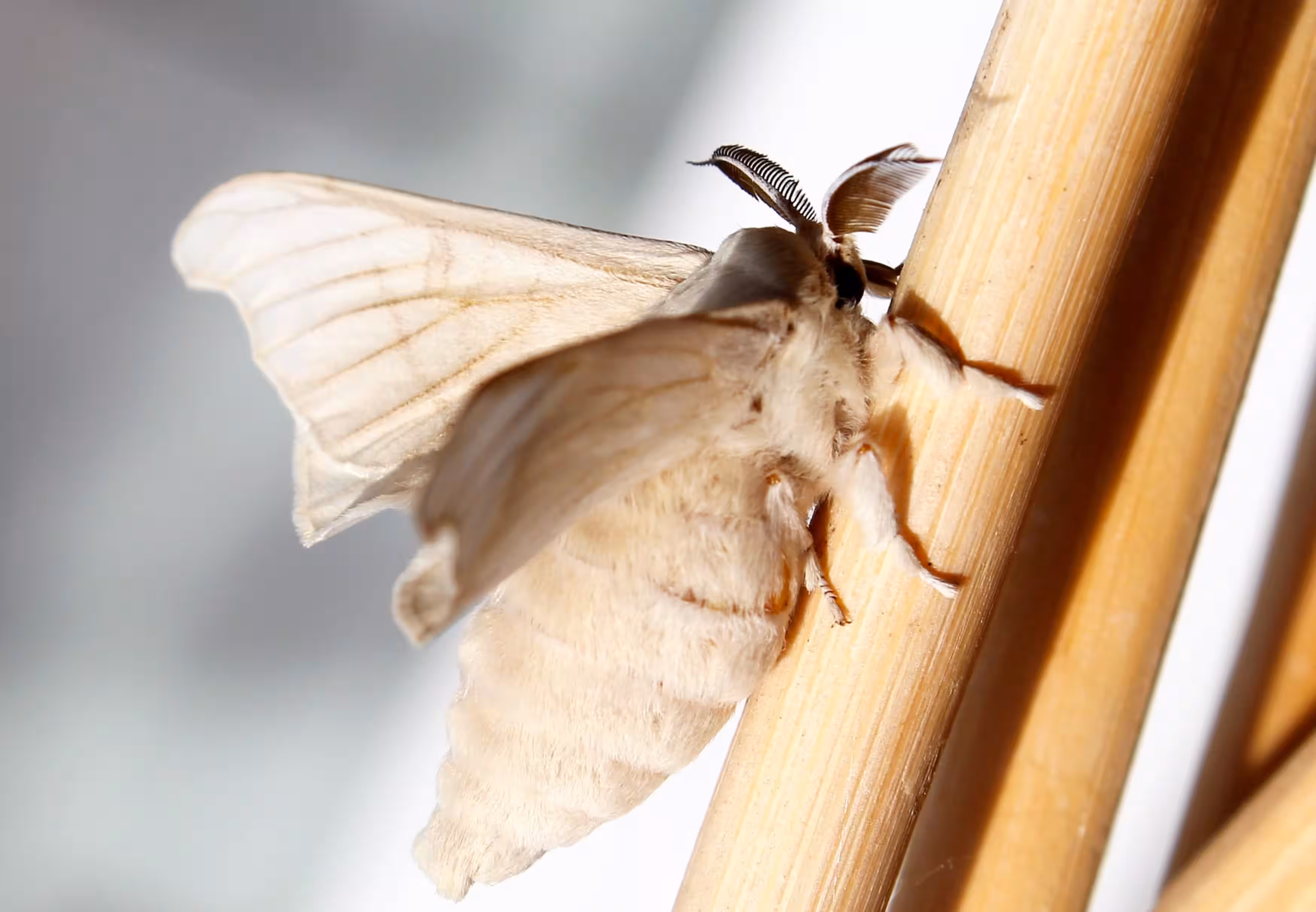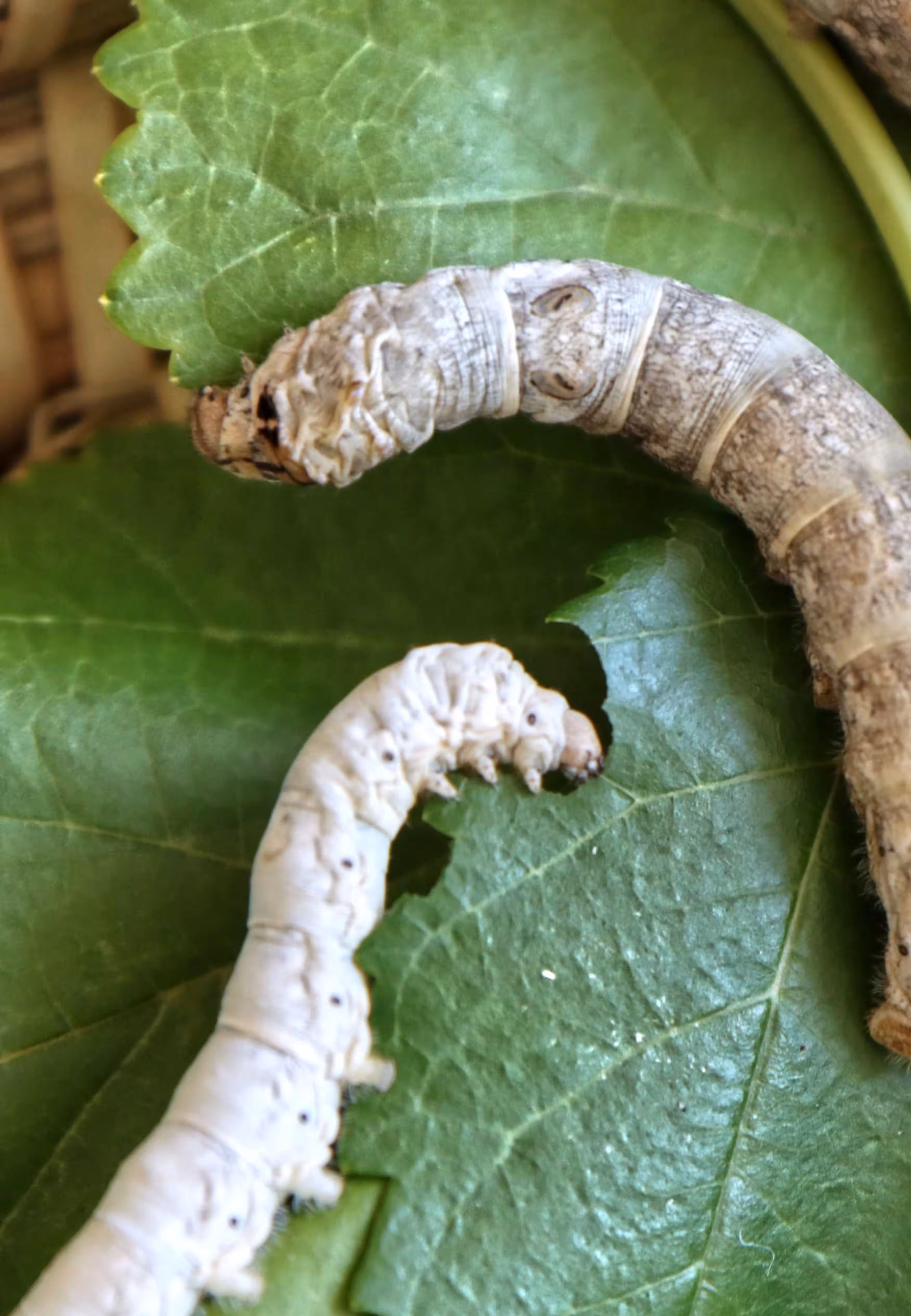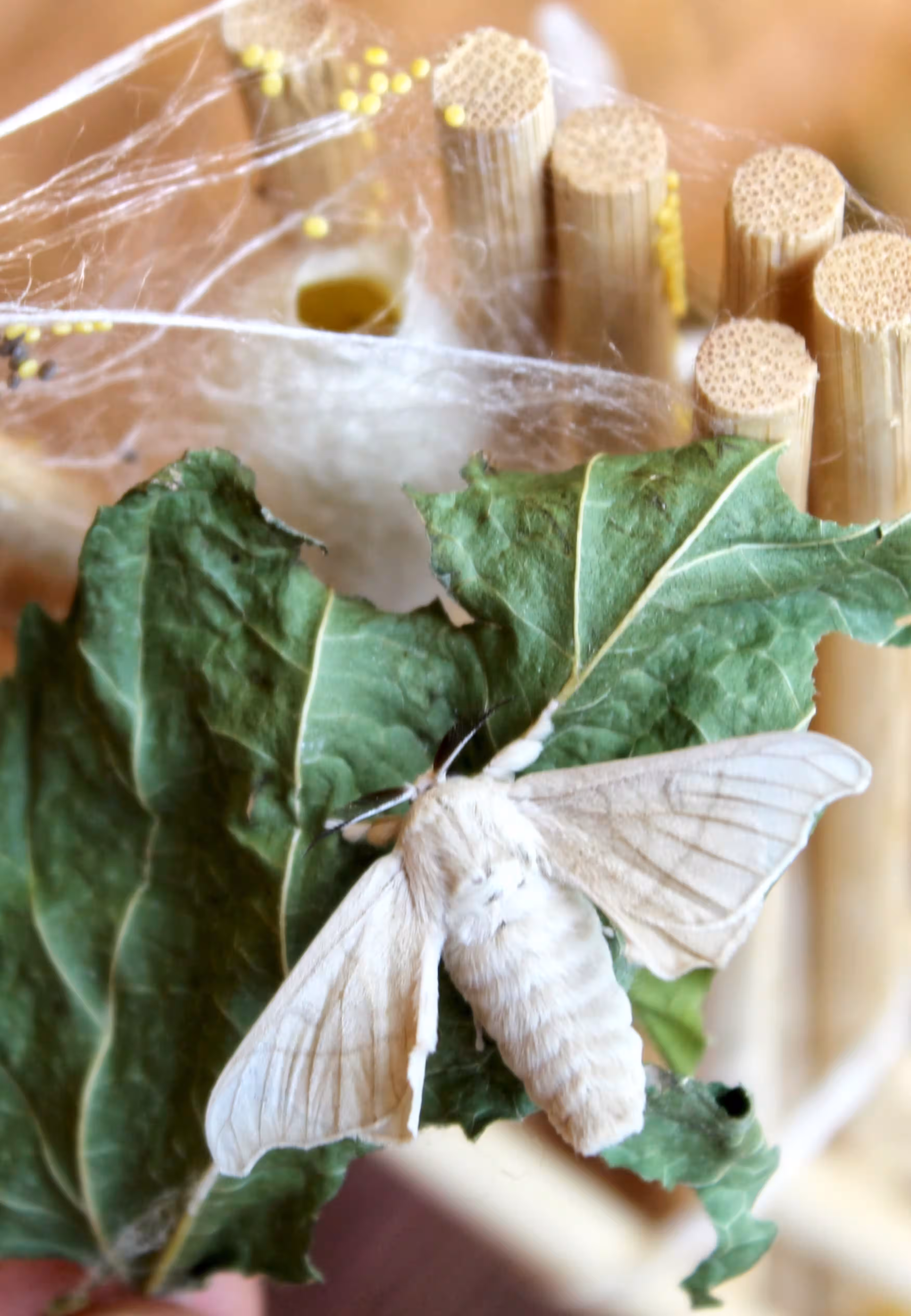 Ein weiteres Problem beim konventionellen Seidenbau ist die starke Überzüchtung des Nutztiers Maulbeerspinner. Der zur Seidengewinnung gehaltene Bombyx mori stammt von der Wildform Bombyx mandarina ab. Durch die jahrtausendelange selektive Züchtung sind die Insekten extrem empfindlich und krankheitsanfällig geworden, haben im Gegensatz zur Wildform eine auffallend weiße Färbung und einen stark eingeschränkten Geruchssinn. Sie sind vollständig vom Menschen abhängig und könnten in freier Natur nicht überleben. Und wie immer, wenn der Mensch sich ein Nutztier heranzüchtet, wurde auch dieser Nachtfalter so verändert, dass seine Haltung möglichst einfach und kostengünstig ist. So wurde ihm beispielsweise die Flugfähigkeit weggezüchtet, damit er in Gefangenschaft nicht davonfliegt. Es ist traurig zu sehen, wie die Tiere sich krabbelnd fortbewegen und dabei verzweifelt und erfolglos mit den Flügeln schlagen. Anders als ihre wilden Verwandten können die Seidenspinner auch nicht mehr fressen, da ihre Mundwerkzeuge verkümmert sind. Ihr ausschließlicher Daseinszweck als Schmetterling ist die Vermehrung. Sie verpaaren sich, das Weibchen legt Eier, und dann ist ihr Leben auch schon nach wenigen Tagen zu Ende.