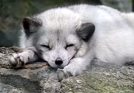 Der Polarfuchs wird auch als Steinfuchs, Eisfuchs oder Arktischer Fuchs bezeichnet. Er ist in den arktischen Regionen der Nordhalbkugel (z.B. Alaska, Kanada, Grönland, Island, nördliches Russland) beheimatet. Mit seinem dicken Fell und einer entsprechenden Fettschicht übersteht das scheue Raubtier selbst Temperaturen von unter 50 Grad. Der Speiseplan des Polarfuchses reicht von kleinen Säugetieren wie Lemmingen, Hasen und Mäusen über Vögel und Eier bis hin zu Aas. Er gilt als monogam und soll als Paar ein Leben lang zusammenbleiben.