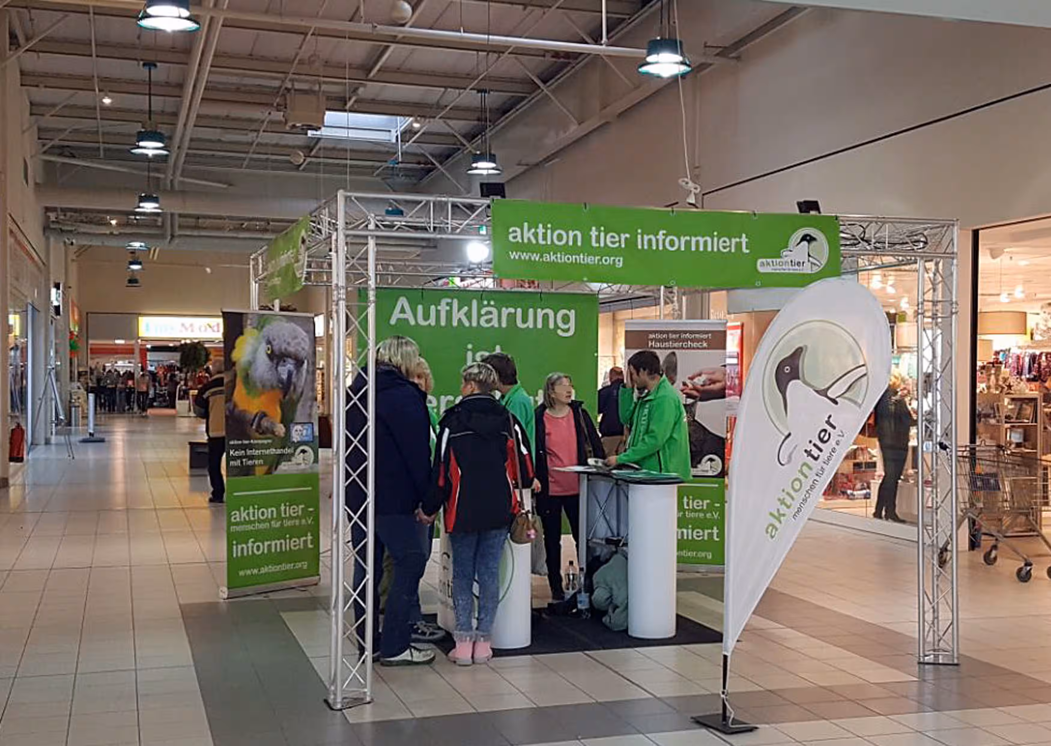 Unsere grünen Informationsstände finden Sie immer dort, wo etwas los ist: Zum Beispiel in Einkaufszentren und Fußgängerzonen, auf Heimtiermessen oder Festivals wie dem "Tollwood".